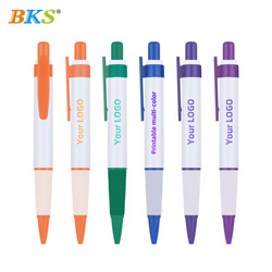 Bks הנמכר ביותר מכירת עט כדורי קידום מכירות לוגו מותאם אישית הדפסה 1.0 מ "מ מחיר כתיבה רוחב פלסטיק זול